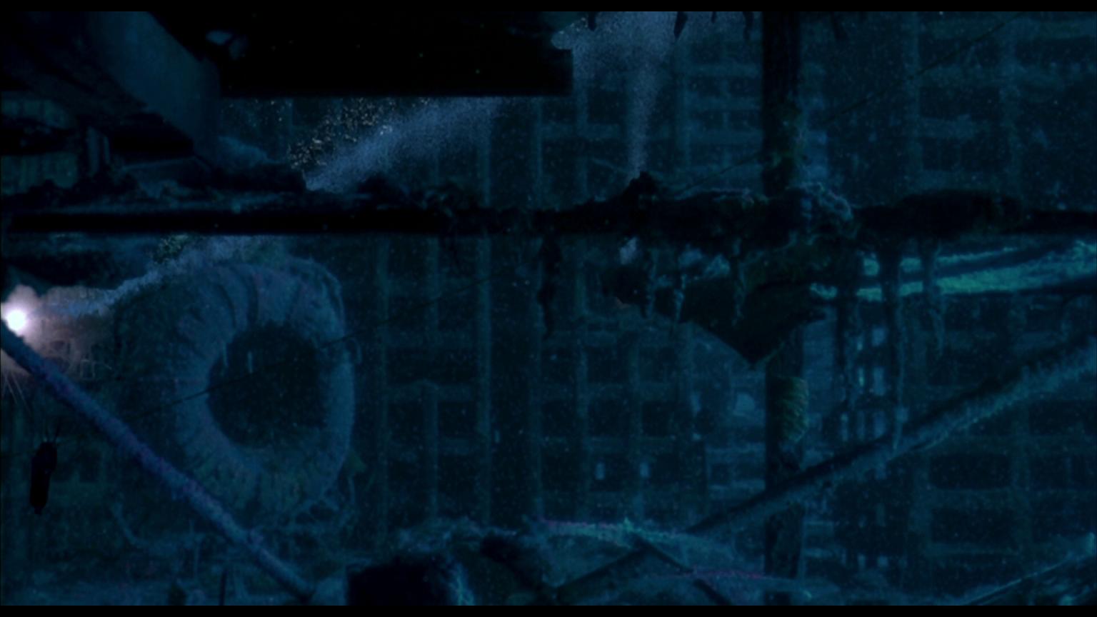 At 11:22 on the Blu-ray, workers on the atoll are gutting a